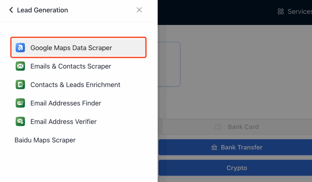 Under Lead Generation, select Google Maps Data Scraper. This tool helps you extract business names, websites, phone numbers, addresses, and more from Google Maps.