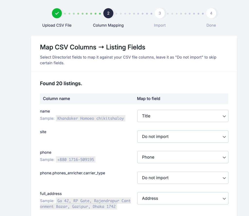 Scraped data is collected automatically from public sources. It helps you fill your directory quickly so that your website looks active and ready. You can later edit, verify, or remove entries as your project grows.