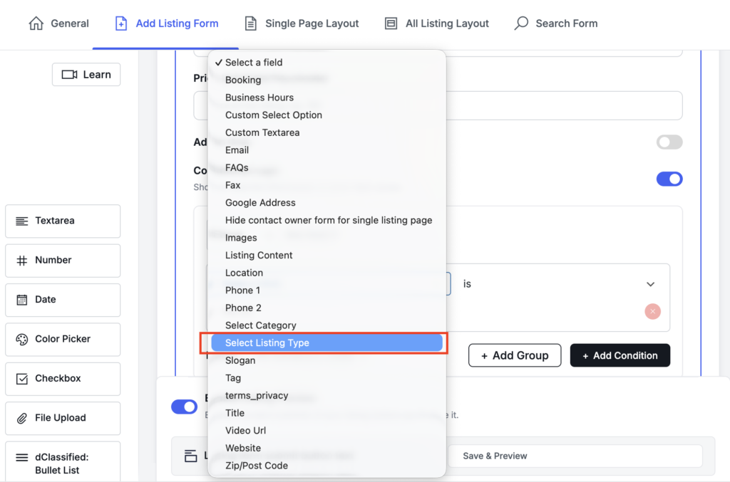 Listing Type Now Works with Conditional Logic