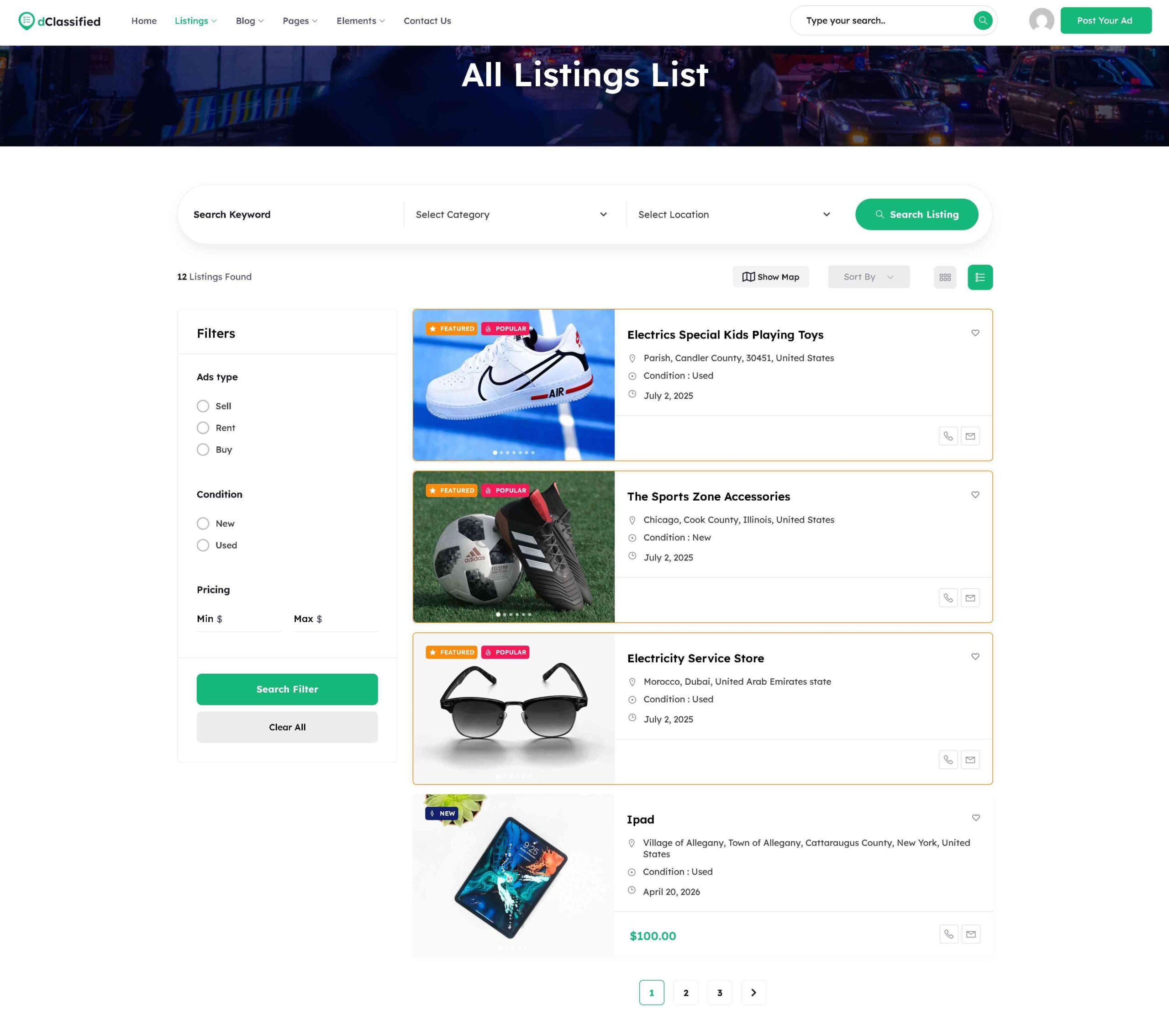 If you don’t like the default grid view of the listings or classified ads, then you can change it to the listing view. You can do it very easily from Directorist > Settings > All Listings > Default View > List.
