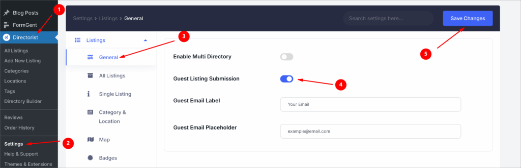 Surprisingly, Directorist has a special feature of guest submission which means you can let your users submit the ads even if they are not signed up or logged in to the website. You can enable this feature from the following settings: Directorist > Settings > Listings > General > Enable “Guest Listing Submission” > Save Changes
