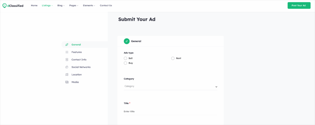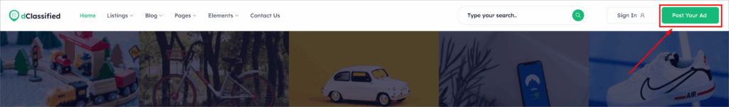 Now it’s your visitor’s turn to add classified ads. When a user lands on your website, s/he would see a navigation bar where the user can add the classified ads from. Generally, the user needs to click on the “Post Your Add” button to submit his or her ad.