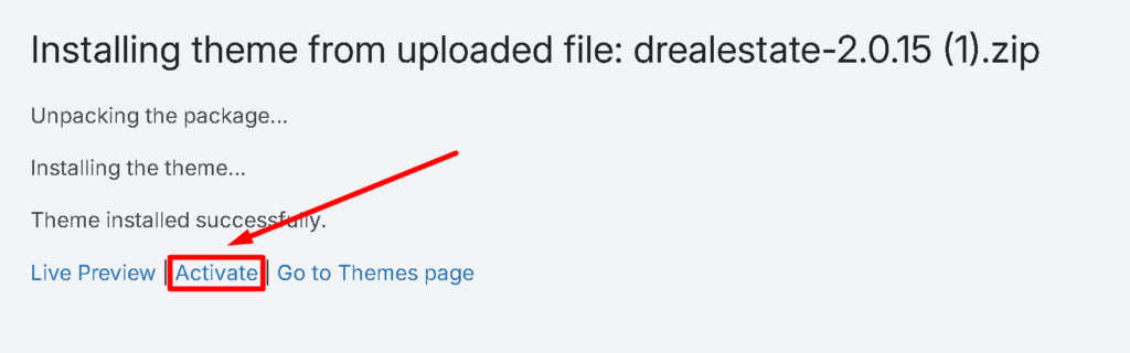 Finally, activate the theme to take an effect by clicking the ‘Activate’ button: