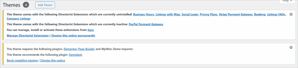 Once you install the theme, you will see a suggestion in the form of a notification to install some supplementary plugins and tools (Elementor, Contact Form 7, MailChimp, and a Theme ToolKit). They are necessary to run the theme perfectly. So, make sure to install them using the “Begin Installing Plugins” option.