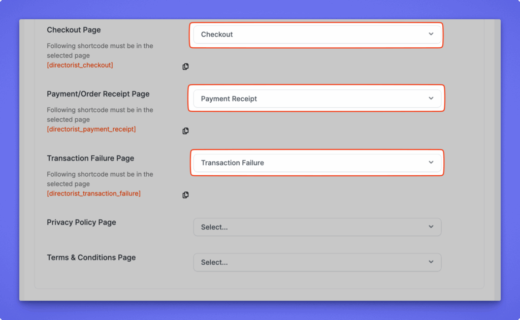 WP Admin Dashboard → Directory Listings→ Settings → Page Setup