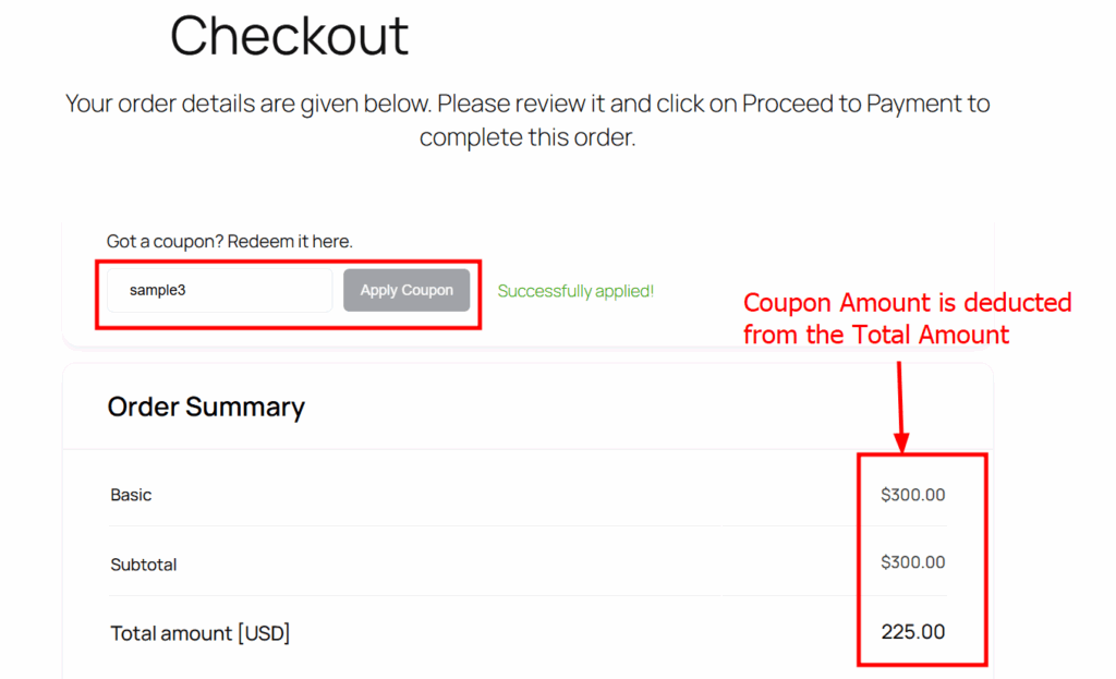- Example: If the coupon amount is set to 5% and a user purchases a $100 plan, the system will deduct $5, making the final price $95.