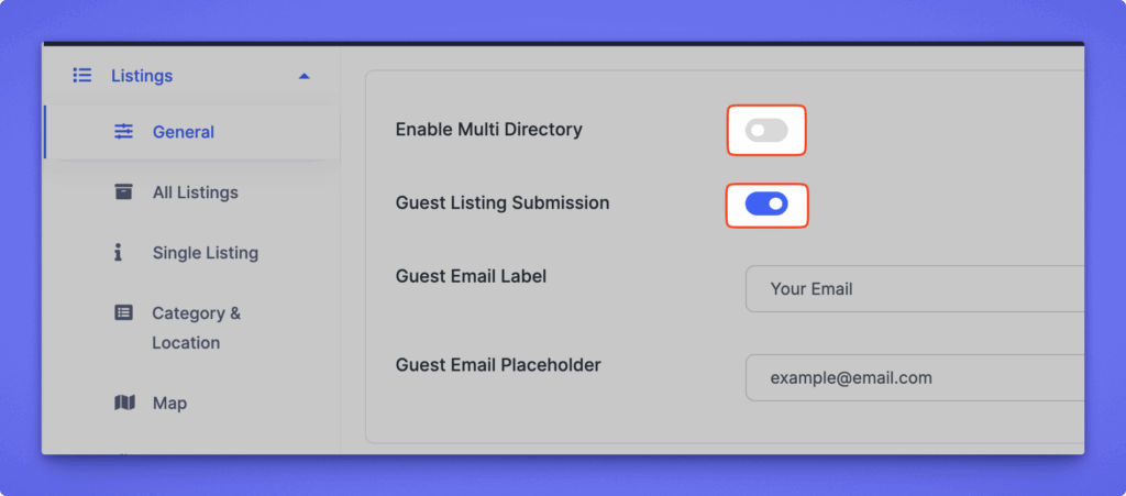 Turn this option ON to create and manage multiple directory types (e.g., Restaurants, Real Estate, Jobs) within the same website. Each directory can have its own set of fields and layouts.
