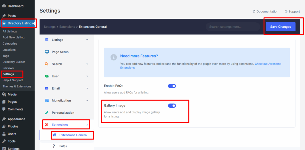- Navigate to Directory Listings > Settings > Extensions > Extension General
