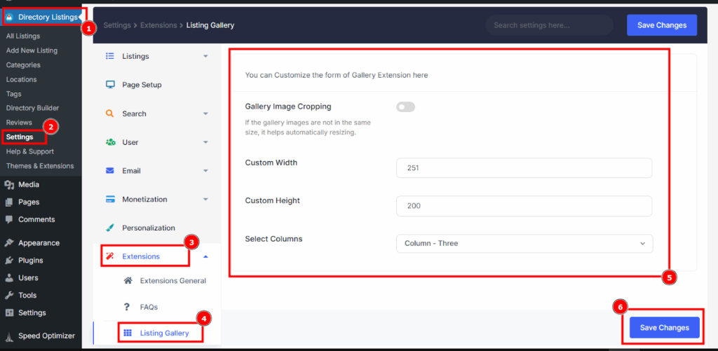 | Custom Width & Height | Define exact dimensions for gallery images. | Width and height in pixels. |