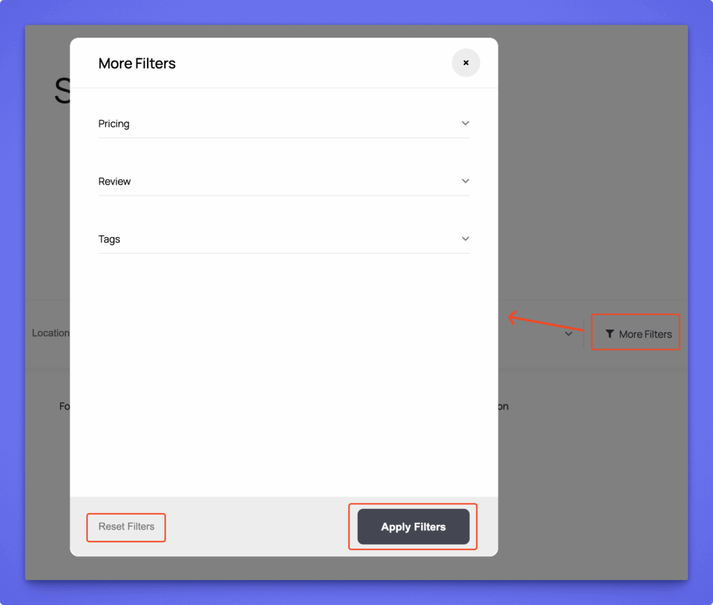 Allows users to search by listing tags. Useful when listings are tagged with features like “Family-friendly,” “Pet allowed,” etc.