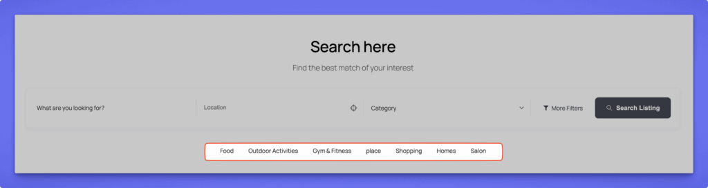 Enable this to show popular categories directly within the search section, allowing users to quickly browse trending listing types.